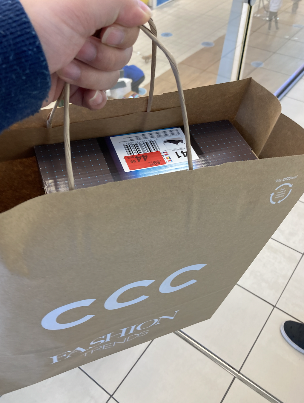 아무튼, 쇼핑센터에 들어가서 10분도 안돼서 신발을 구매했습니다. 필요한 물건이라서 금방 구매하게 되더라고요. 쇼핑을 할 때마다 느끼는 거지만, 저는 쇼핑이랑 안 맞는 것 같습니다. 돈을 잘 못쓰는 성격에 결정장애가 있어서 뭘 사려면 스트레스를 받거든요... 이번에 산 신발도 할인을 하는 것으로 구매를 했습니다. 보통 도나우 젠트룸 쇼핑센터에서 물건을 사면 종이백 가격은 별도입니다. (60 센트 정도 했던 것 같아요.)