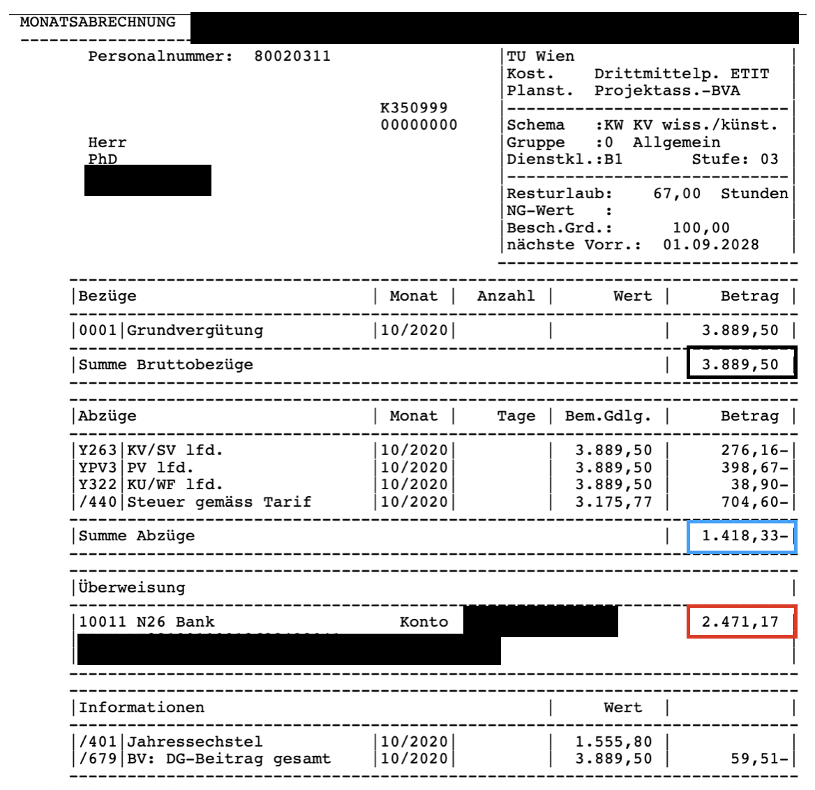 현재, 제가 받고 있는 오스트리아 포닥 월급에 대해서 공유를 해보려고 합니다. 우선 월급 명세서를 확인해 보록 할까요?