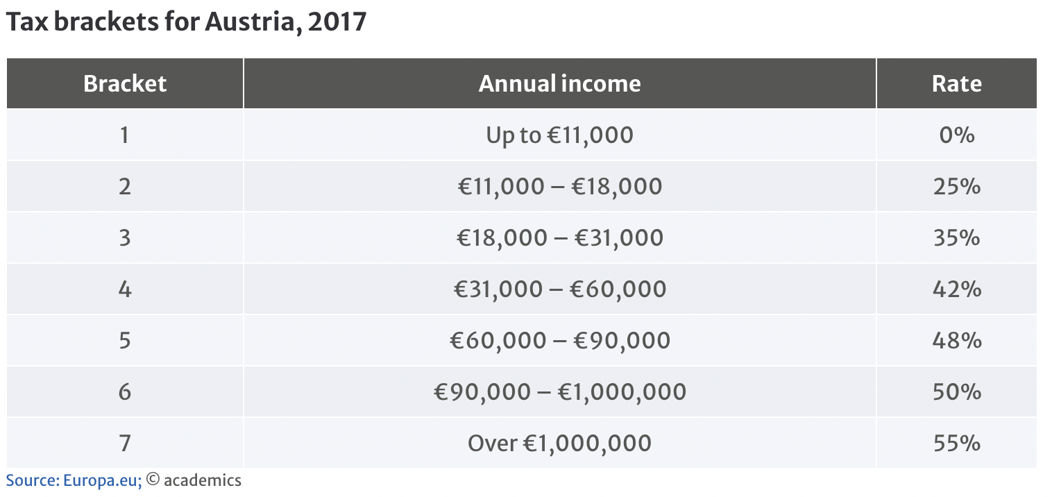 아래 그림에 오스트리아에서 소득 별 세금을 확인할 수 있습니다.