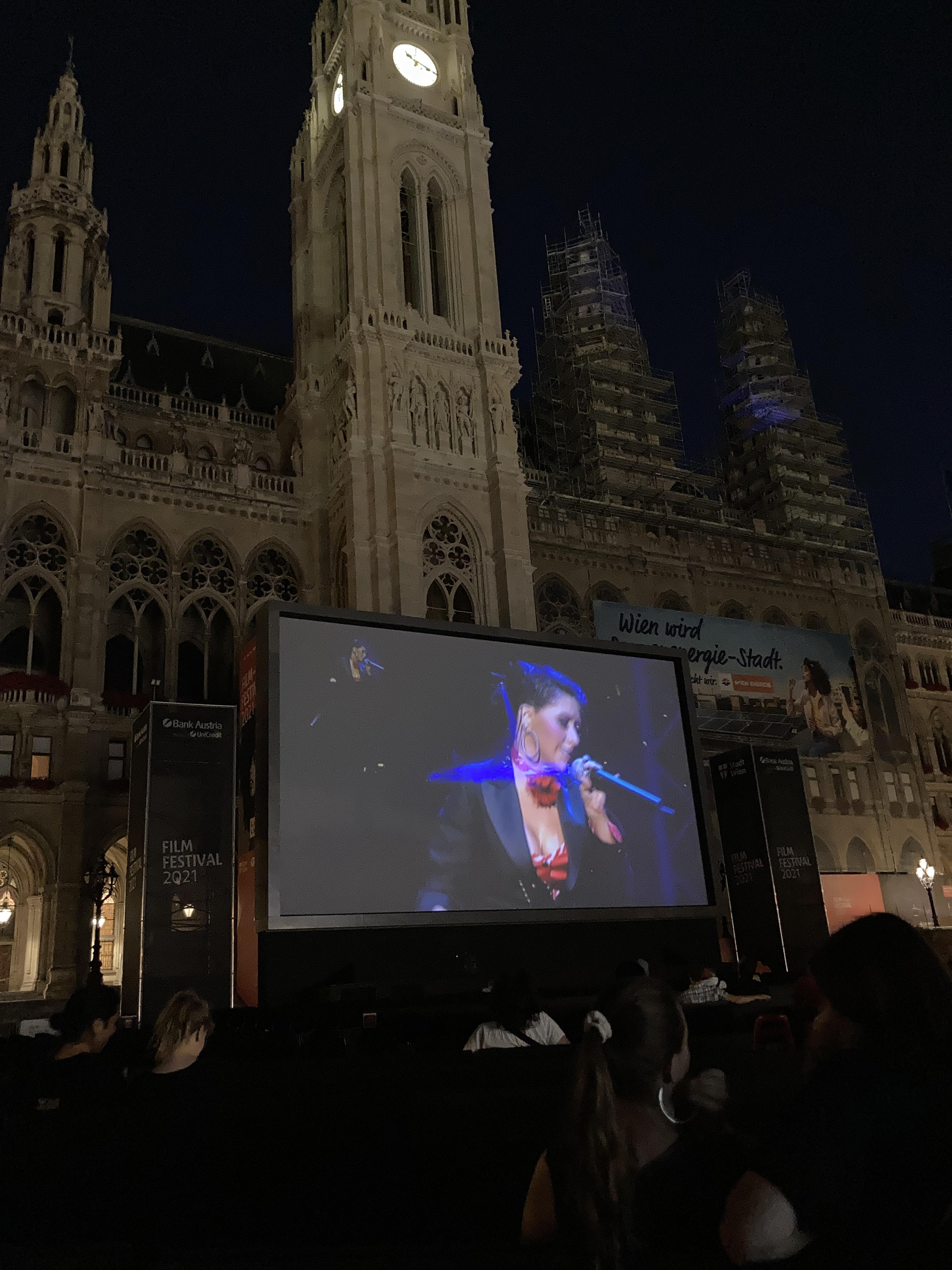 필름페스티벌에서 무료로 음악 관련 영상들을 비엔나의 여름밤에 즐기실 수 있습니다. 코로나 시국이어서.. 행사장에 입장할 때 백신 접종이나 음성 테스트 증명서를 보여줘야 했습니다.